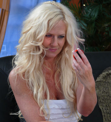 Kelley wakes up believing that she is still on the show. Somehow she does not seem to remember the first round and the fact that she is almost naked eludes her completely. What can I say, the power of suggestions is a beautiful thing. Anyway, the next question is way too tough for her to answer but before she realizes what is going on, she drops like a rock. Looks like our horny blond went to sleep in the middle of our show. Being the nice guy that I am, I am trying to wake her up by moving her around, picking her up and dropping her and I even try to wake her up by sensually playing with her long neck but no result.
