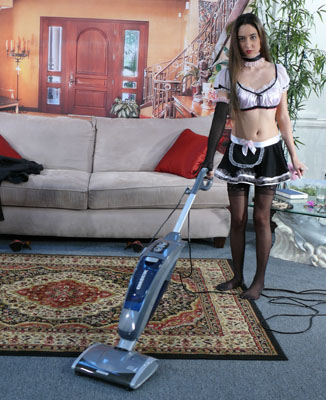 dream comes true. Watching your wife ironing your shirts while naked and entranced is most likely the dream of many men. Well, take a look at our entranced beauty doing just that. The second I snap her out of it, my sexy little wife seems to have yet another problem which is the fact that her body is frozen stiffly. Too bad that now is aware yet unable to move. Naked and with the iron still frozen in her hand she tries to bargain with me and when that does not work the bitching starts (particularly when I dust her tits). Looks like we need to use the "Jedi mind-trick" (waving hand) to render her quiet and mindless again. Next comes the part where my wife seems to laugh her ass off about nothing. Could she feel some kind of irritating sensation that makes her laugh uncontrollably when least appropriate? The last part of this segment is all about my wife being frozen as well as turned back into my subservient robot which is programmed to orgasm whenever it is ordered to do so. Poor thing ends up feeling one orgasm after another while I am heading out for lunch. I think that's going to teach her. |